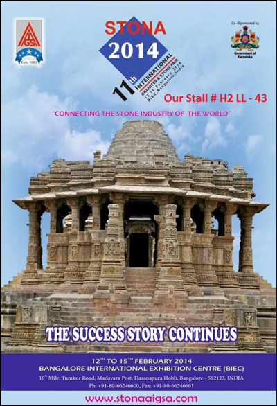 Our Stall # H2 LL - 43 Fair : 11th International Stona - 2014 in BIEC, Bangalore, India Date : 12 to 15 February 2014